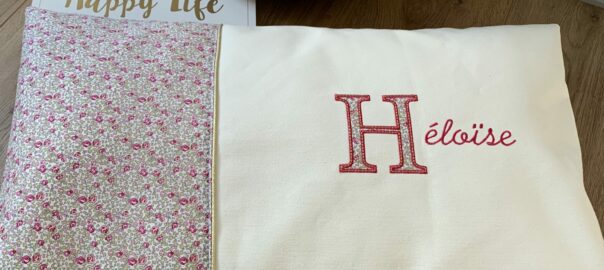 Cadeau original et 100% personnalisé avec la broderie et tissu(s) de votre choix pour se faire plaisir ou pour offrir lors d’une naissance, un anniversaire, un baptême, un mariage…