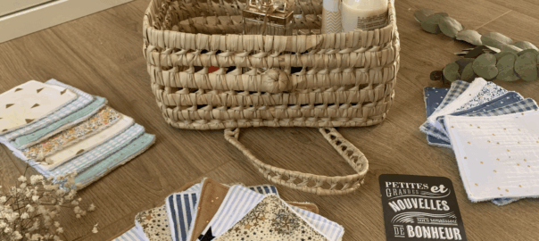 Vous pourrez également choisir un pochon assorti à votre lot de lingette : cadeau unique et surprise garantie. Le pochon est en double gaze fermé par un ruban et deux perles en bois naturel !!!!