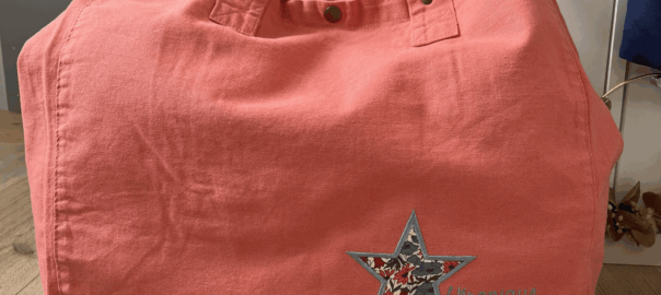 Maxi sac cabas en coton capacité 38 litres. Pour ce sac un mot de maxi 5 lettres est brodé avec du tissu à l’intérieur. Vous pouvez ensuite le personnaliser avec des prénoms ou autre texte de votre choix.