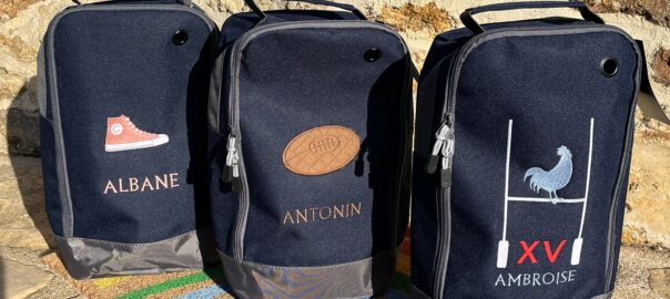 La broderie se fait sur le corps du sac, avec une lettrine.