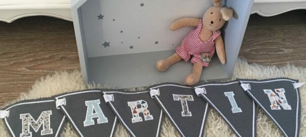 Les fanions sont en tissus épais (ce qui leur donnera une meilleure tenue), et des lettres dans les cotons fins, les liberty. …