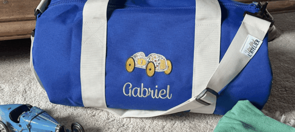 Cadeau original et personnalisé idéal comme sac de sport, sac week-end chez les grands parents, sac pour la crèche ou chez nounou….