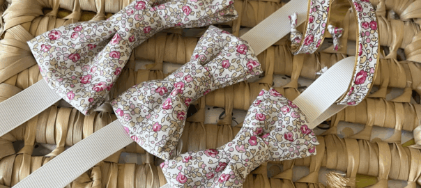 Mes nœuds papillons sont composés de deux nœuds superposés et reliés avec un lien central. Le nœud est fixe et se ferme par un scratch à l’arrière.