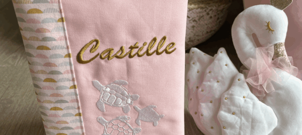 Pour cet article vous pouvez choisir un tissu extérieur où sera brodé le prénom et le motif de votre choix, et un tissu intérieur. Le protège carnet de santé est entièrement doublé et molletonné! Le plus dur sera de choisir les tissus et la broderie…