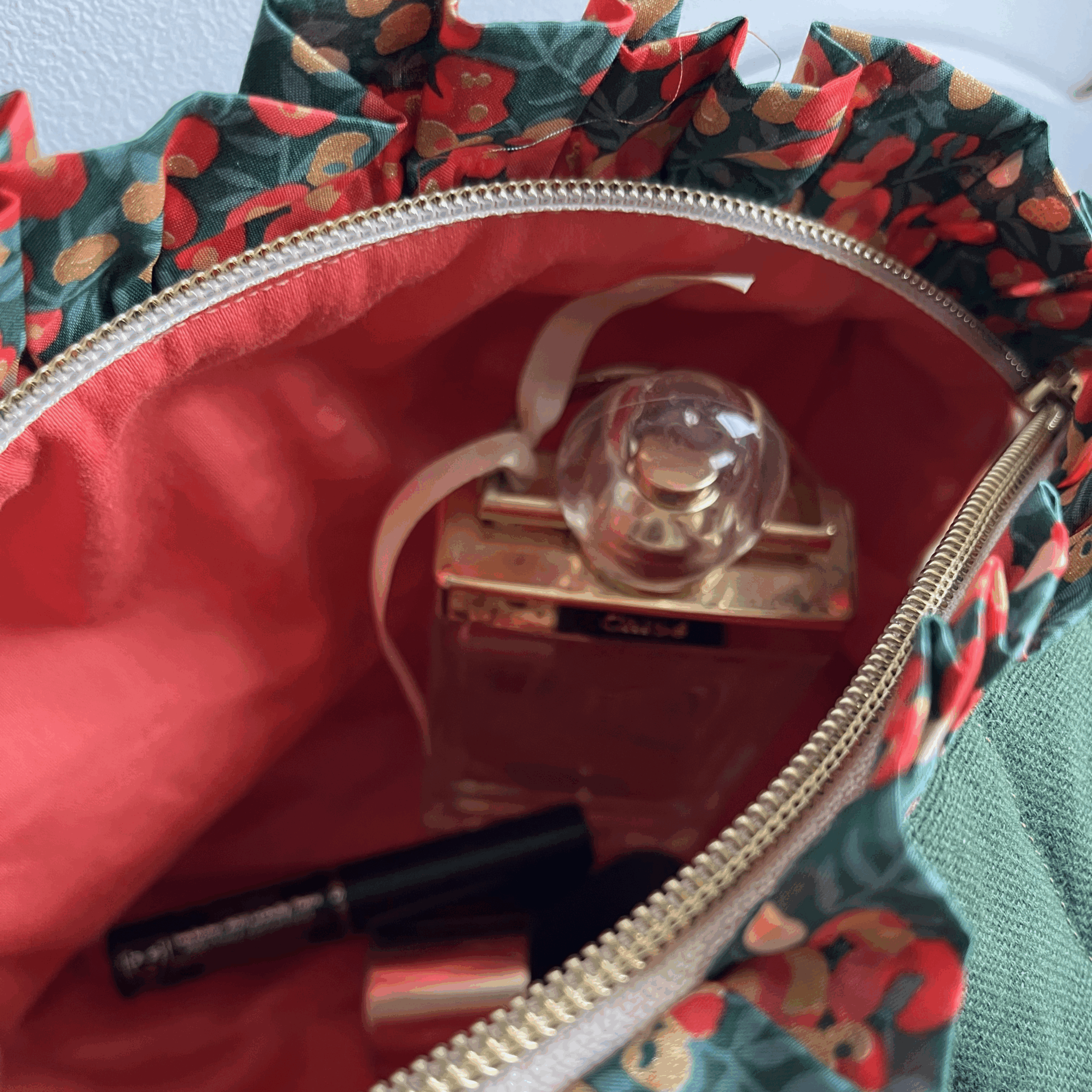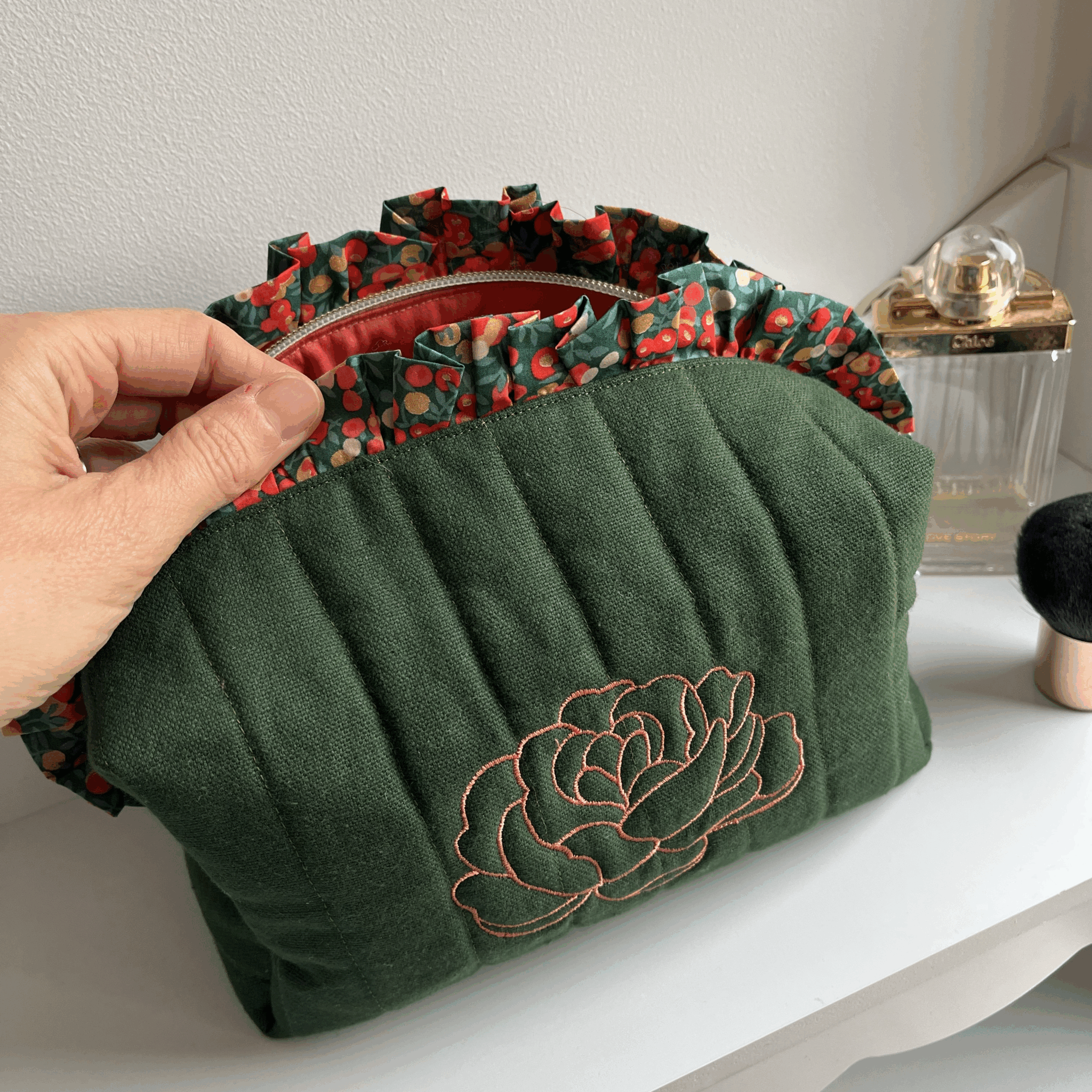 Cette trousse est doublée et matelassée par mes soins, elle a une couche de ouate entre les deux tissus.